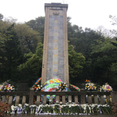 3月30日下午13点30,我系学生在烈士墓碑前进行默哀、鞠躬、献鲜花等活动,站在烈士墓前,学生们纷纷敬献白花,庄严三鞠躬,以此来表达对烈士的敬仰之情,接着全体成员向纪念碑默哀三分钟,以此来表达对先烈们的哀思,浓重的悲壮气氛令在场的每一位人员感到震撼与沉重。