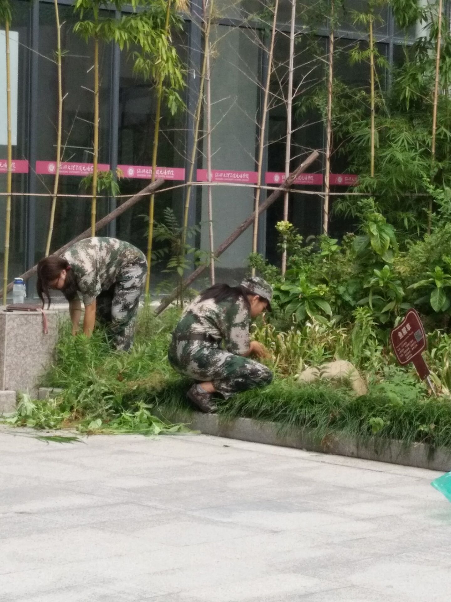 近日,医药与健康分院根据学院迎接全国文明城市复查工作会议精神,对分院所在教学区和办公区进行自查,对历经暑期杂草蔓延的药植园作重点整修。工作由分院党总支书记郑余牵头,孙小红老师作专业指导,20多名军训跟训学生经教官和指导员同意到现场劳作实践。