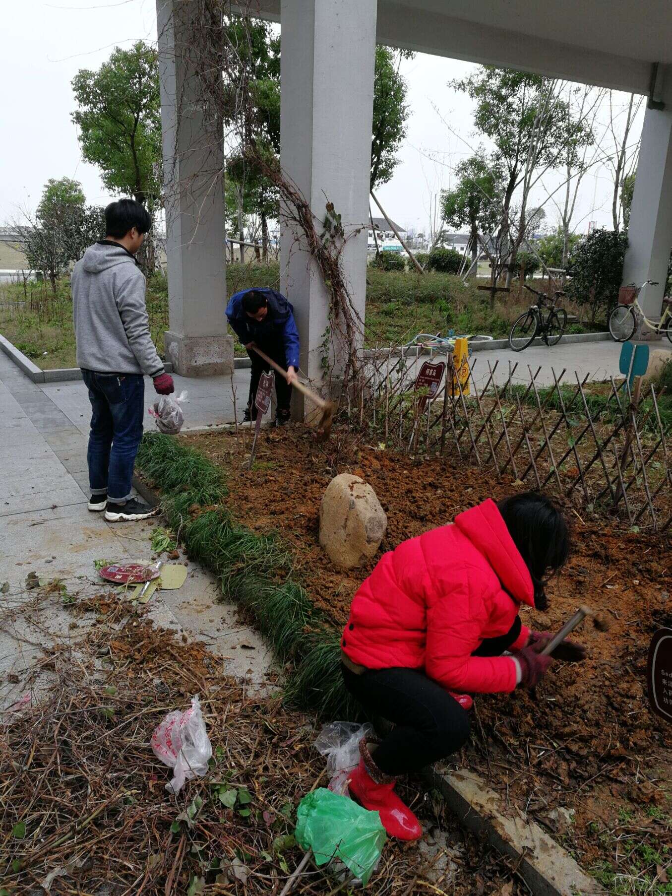 手伶俐地拔起一根根枯干的枝子,顺带拔掉一边的杂草,手中的锄头不停地翻起新土来......为着新生命的生活环境,同学们个个十分积极,各自忙碌着手中的活计,总有一种不到完美誓不罢休的决然。