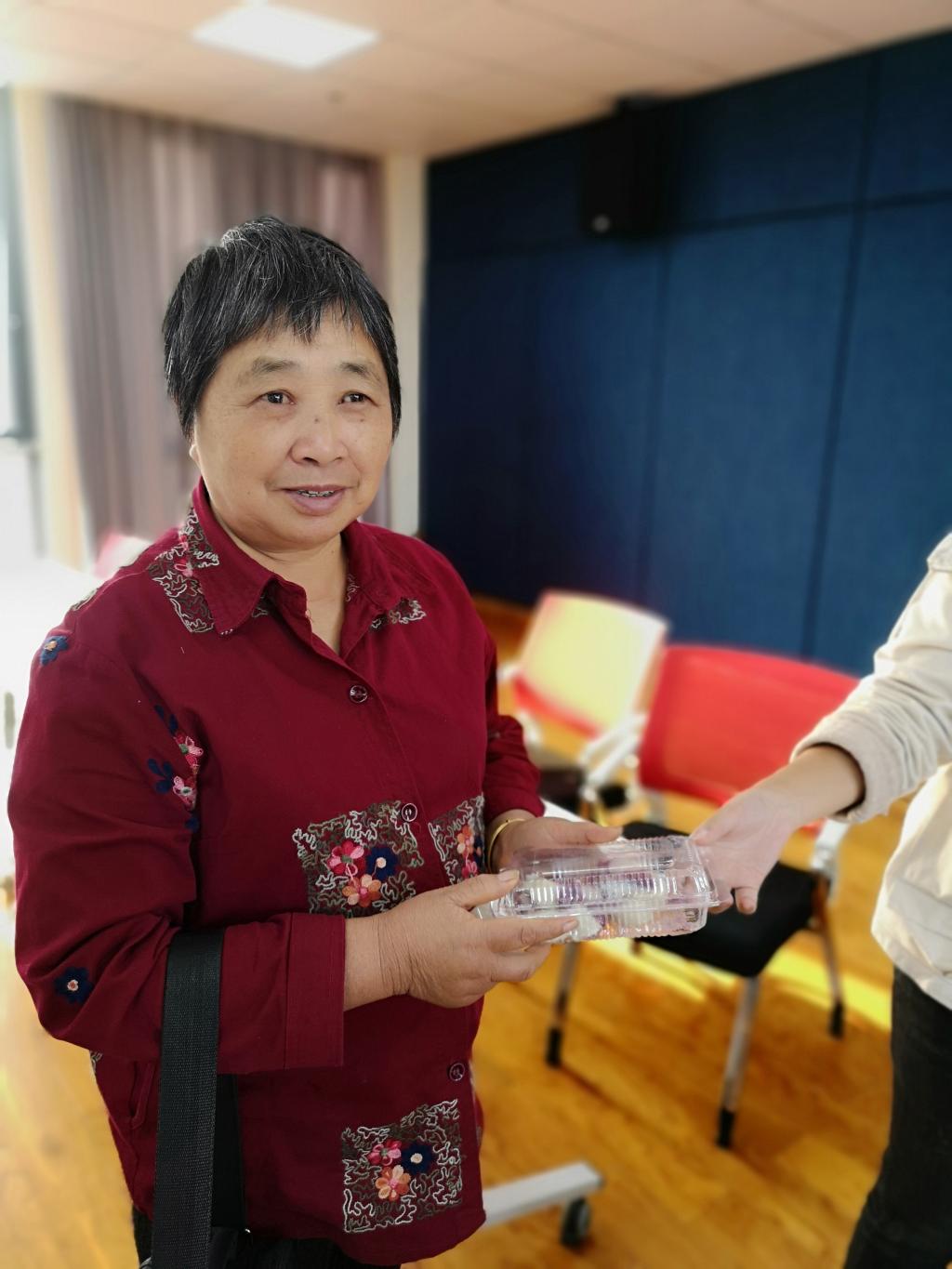 分院党员宣讲团和党员义工服务队来到东浦街道便民服务中心向广大老年人宣讲了秋季养生、老年人保健、防跌防骗等健康知识。同时还向在座的老人们亲沏菊花茶和分发重阳糕,同学们的细心和贴心服务赢得了在场老人们的连连称道。