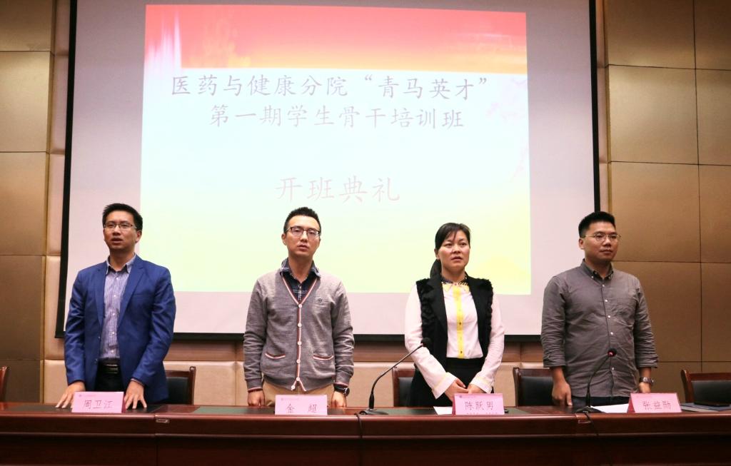 为落实绍兴市高校思想政治会议精神,扎实开展“不忘初心,牢记使命”主题教育,推进学院“五星育人”工作,10月31日晚,医药与健康分院在图书馆828报告厅隆重举行“青马英才”第一期学生骨干培训班开班典礼。马克思主义分院党总支书记陈跃男老师、学工部副部长周卫江老师、医药与健康分院党总支书记金超老师出席开班仪式,医药健康分院79名学生干部参加。
