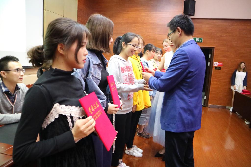 典礼在雄壮的国歌声中开幕,学院学工部副部长周卫江老师为2017年度分院的优秀学生干部代表进行颁奖。