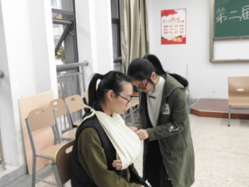 此次比赛涉及CPR、大悬臂包扎、手背部出血等内容。各参赛队伍经过抽签,紧张筹备,以良好的精神面貌和熟练的操作充分将自己的优势发挥到极限,赢得了现场阵阵掌声。经过紧张又激烈的角逐,评委的仔细斟酌,认真评定,有七组同学脱颖而出分获第一二三名以及优秀个人奖。
