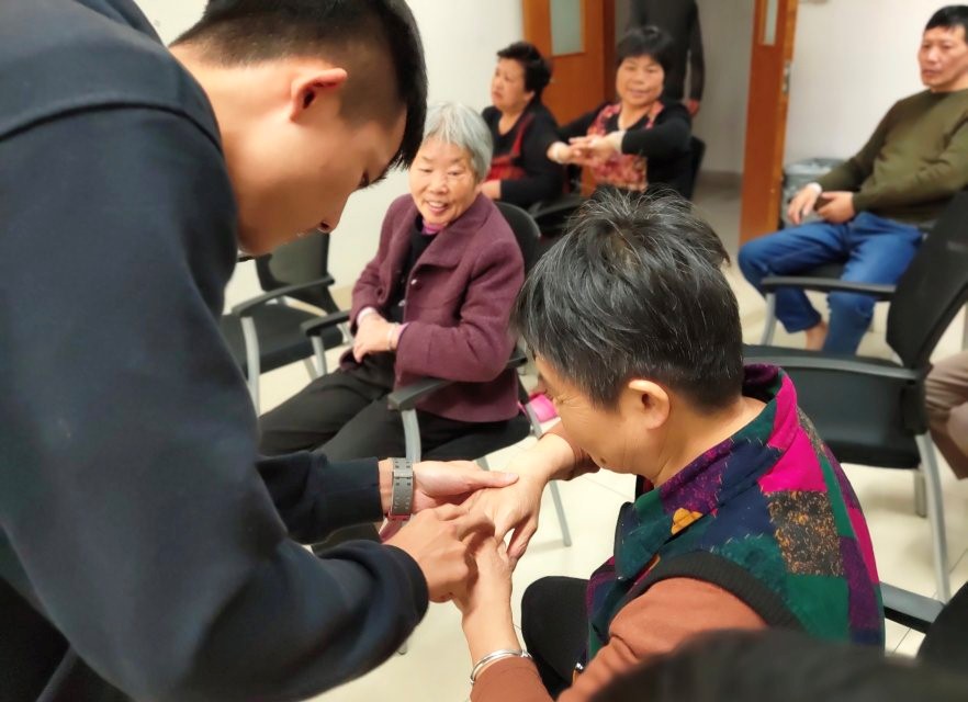 活动一开始,由志愿者和护士一对一教老人们学习一种特别的舞蹈——手指操。他们按照视频所放映的手指操一起学习。夏季老人运动量减少,手指操能够有效锻炼老人肌力与手的握力,预防老年疾病发生。接下来是由我分院十佳歌手所带来的《歌唱祖国》、《游击队之歌》等系列歌曲,和老人们重温70年代的老歌,老人们一起轻轻哼唱,活动气氛逐渐高涨。最后是夹弹珠的小游戏,游戏分为三轮,分别为一分钟限时夹弹珠、30秒限时夹弹珠及十五秒限时夹弹珠。在座的老人积极参与游戏,以加赛一轮结束小游戏并赠送了相应的小礼品。至此,活动圆满结束。