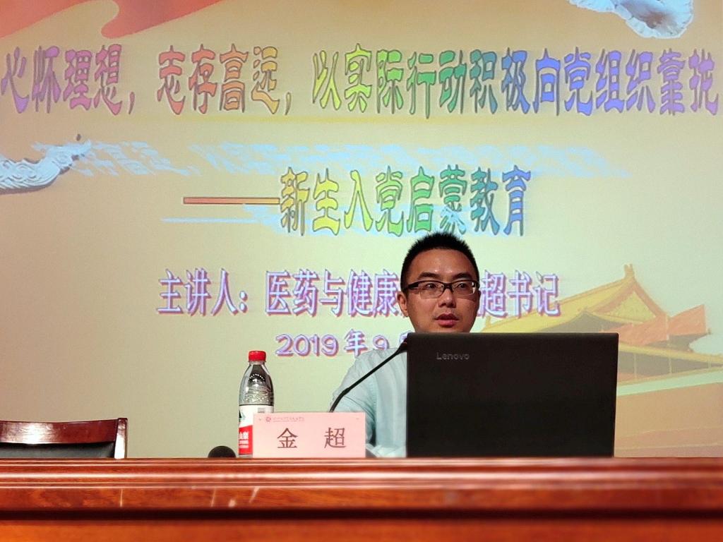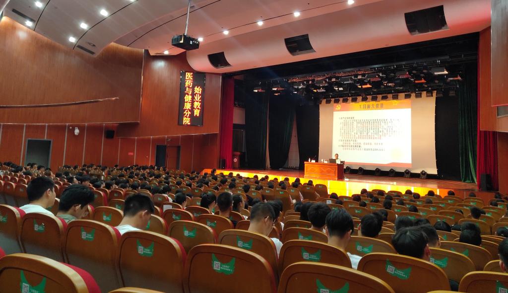 9月2日晚上,医药与健康分院在国际交流中心开展新生入党启蒙教育及学习贯彻习近平新时代中国特色社会主义思想的讲座,讲座由分院辅导员邢钰圆老师主持,分院党总支书记金超主讲,2019级全体新生参加。