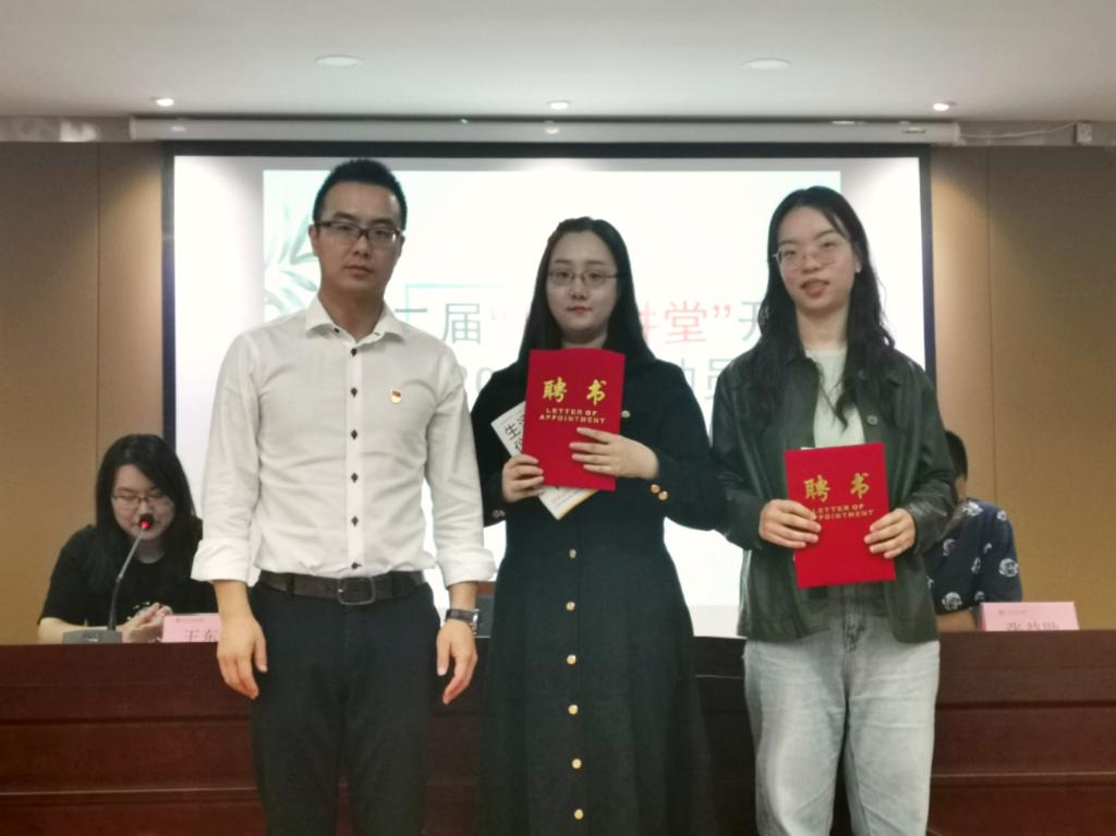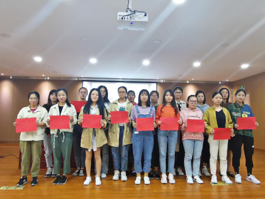 讲座伊始,金超书记首先向冯思琪、李琪琦两位优秀校友颁发聘书,并聘任为第二届“秋实讲堂”讲师并赠送精美书籍。接下来学生党员与预备党员填写就业承诺书,带头承诺就业方面发挥先锋引领作用,不仅要率先完成就业,还要帮助就业困难学生共同就业。