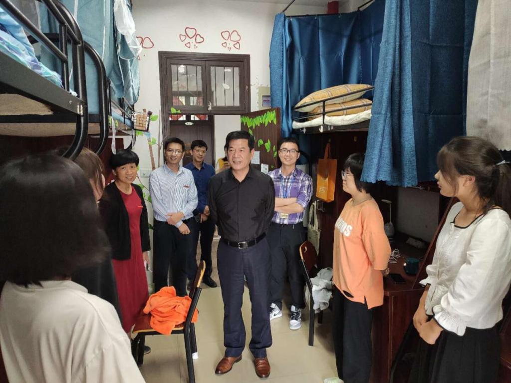新生第一天报到的傍晚,院党委书记叶访春在分院院长周瑾和分院党支部书记金超的陪同下,走访了我院本科新生寝室,叶书记与新生亲切交流,一一询问新生来自哪里,关心她们在学校吃的如何、宿舍条件设施是否良好,并向新生了解到由于疫情在校园采取防控措施的情况下是否感到不适,同时向新生的家长表示慰问,最后嘱咐她们要尽快适应大学生活,努力成为热爱学习、品学兼优的大学生。另外,各班班主任对新生寝室进行了走访,对寝室设施、财产安全、条规条例以及竞选班干部等一系列问题与新生进行了解答。