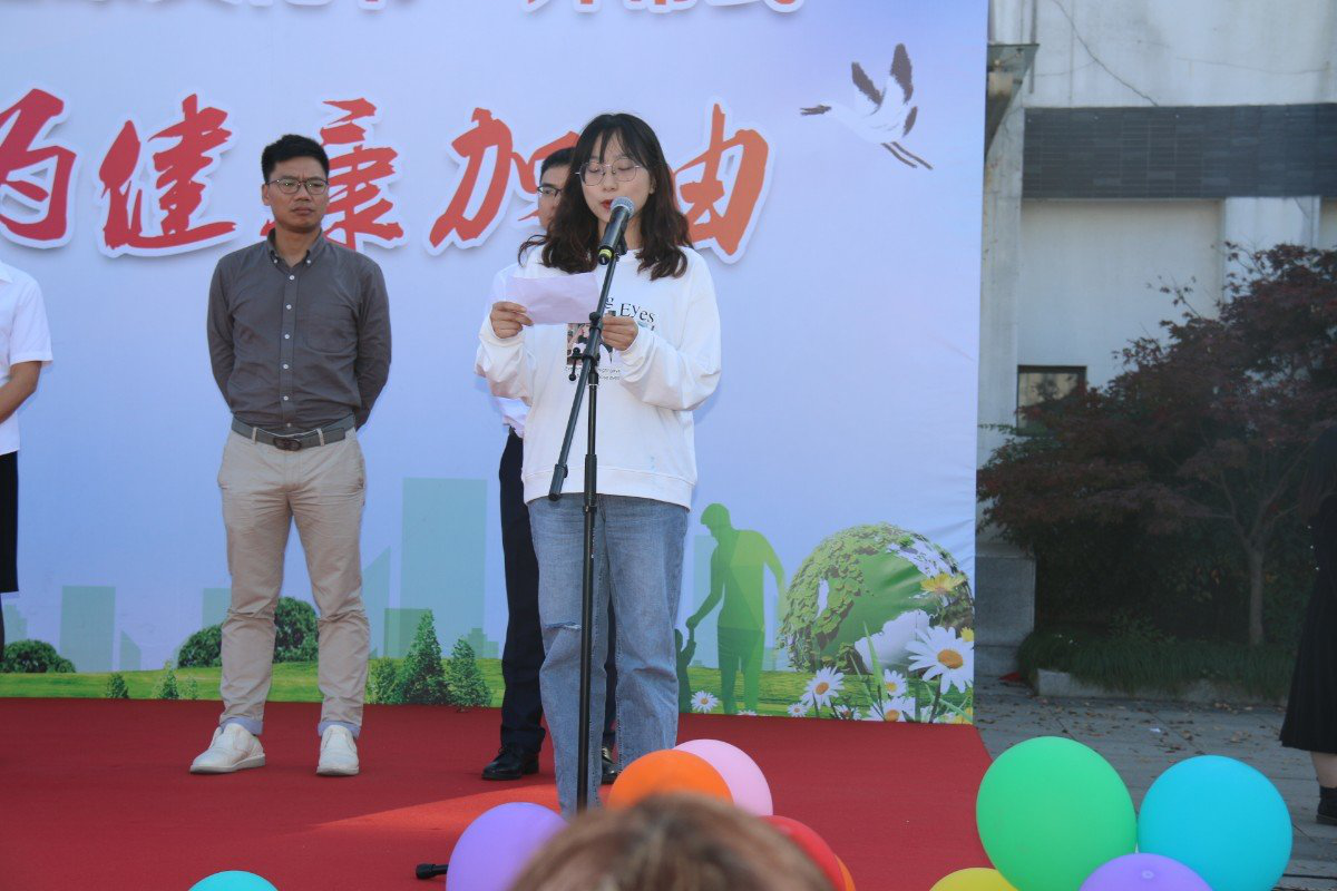 随后是学生代表药学1904班俞娟娟同学发言,她提出健康的身体是我们学习、生活、事业取得成功的保障,积极主动适应大学生活,度过充实而又有意义的大学时代。