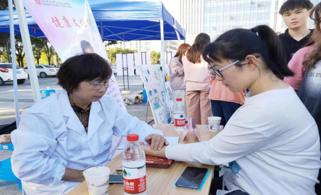 与此同时石富娟、阮学群两位名医坐诊现场也是望背相望、人山人海。在医生专业的把脉、观察和询问中,对我院师生的健康疑问给出了实质指导建议。其他各个展区也是人满为患,同学们积极参加各项健康游戏活动,现场虽热闹非凡却井然有序。在游园活动中,还进行了激动人心的抽奖环节,完成10个及以上项目即可在现场参与抽奖活动,我分院并为其准备了丰富的奖品。活动期间,学院领导亲临现场与同学们亲切互动,石旭明书记在药膳比赛中认真倾听选手讲解,并给予专业点评,吸引了大量同学观赛。李黎院长接受同学们热情邀请,为健康游园项目抽取一等奖,将文化节推向高潮。