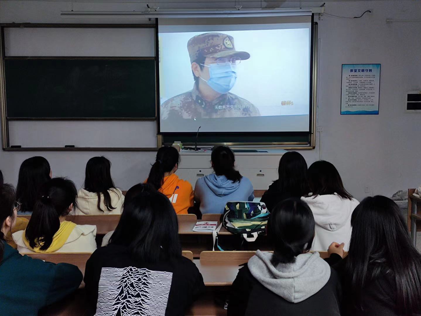 下午5点整,党学生们齐聚一堂,观看由中共中央组织部、中央广播电视总台联合录制的反应新冠肺炎疫情防控阻击战中先进基层党组织和优秀共产党员典型事迹的《榜样5》专题节目。