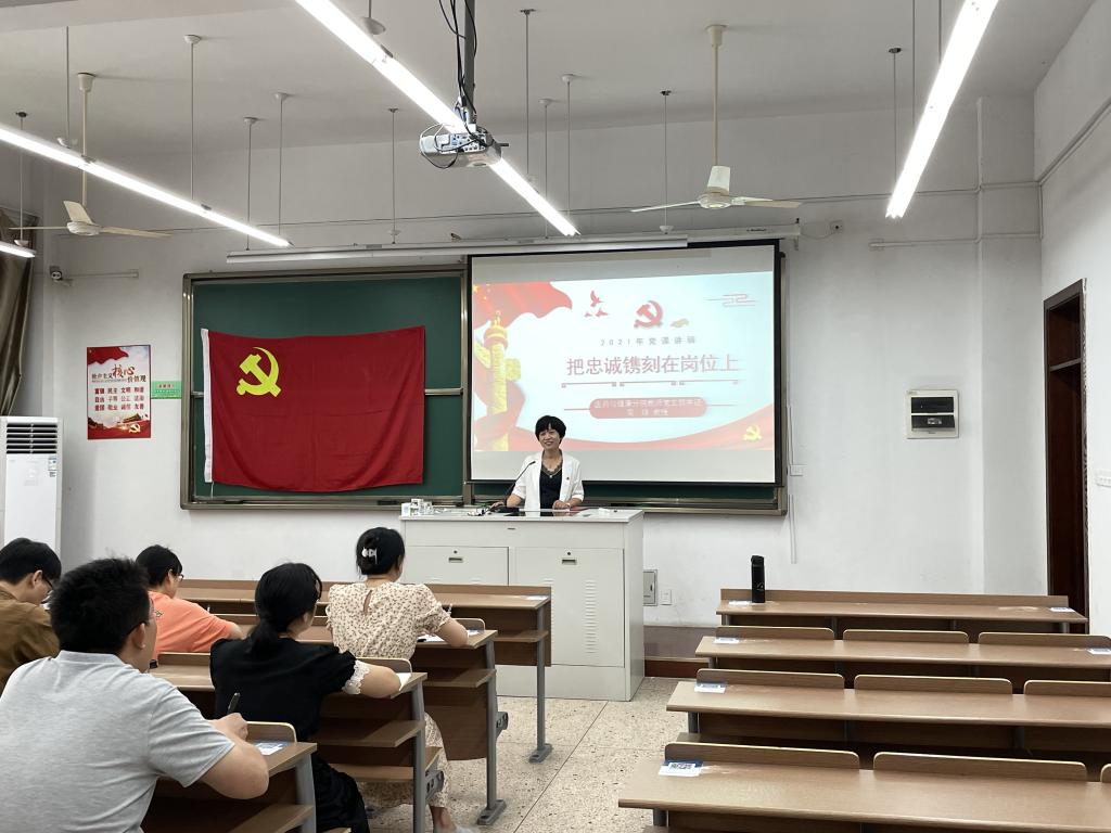 为庆祝中国共产党建党 100 周年,6月30日下午,医药与健康分院教工党支部书记周瑾以“把忠诚镌刻在岗位上”为主题,深度结合工作实际,为支部党员上了一堂生动的党课。