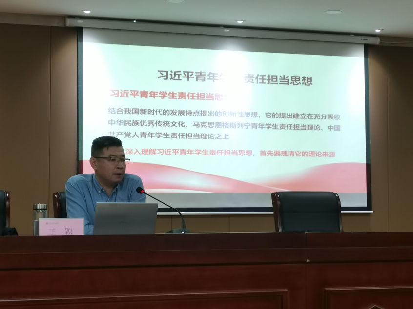 最后,绍兴文理学院党委组织部王颖老师就习近平新时代中国特色社会主义思想与青年学生的责任与担当展开讲解。为深入理解习近平青年学生责任担当思想,从中华民族优秀传统文化,马克思恩格斯列宁青年学生责任担当理论,中国共产党人青年学生责任担当理论出发,结合我国新时代的发展特点,全面的理清它的理论来源。然后提出关于青年学生责任担当的要求:坚定理想信念,锤炼高尚品格,练就过硬本领,矢志艰苦奋斗,勇于创新创造。这也表达了王颖老师对我分院学生的展望。希望学生能善于抓住时代发展的机遇,培养创业意识、开展创业活动,通过劳动来服务人民群众,促进经济发展,实现自我价值和社会价值的统一。