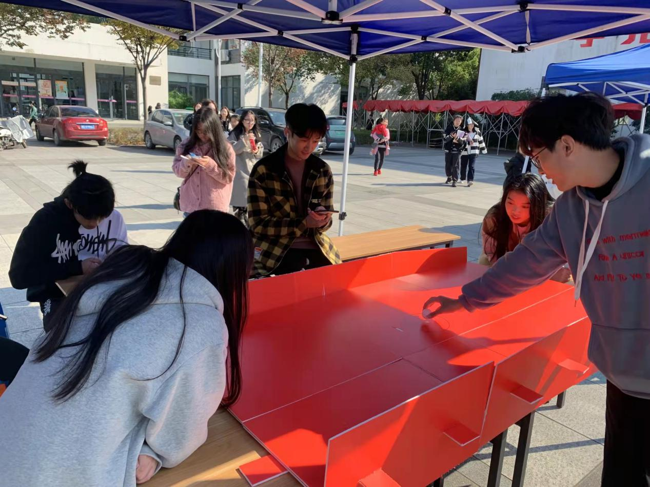 图为金超书记与张再洋老师参加“套中你的心”活动