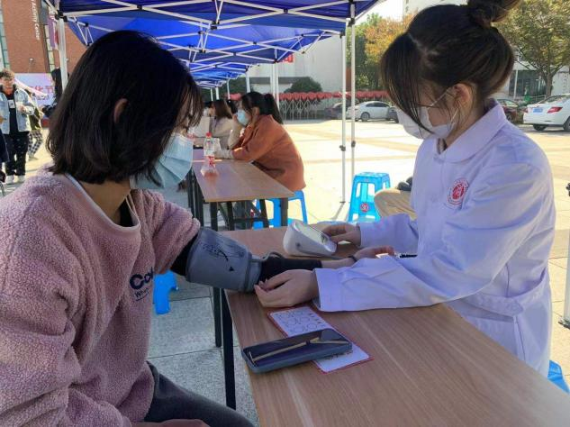 在健康知识宣传版块中,我分院诚挚邀请到主治中医傅越现场坐诊,为全师生提供免费咨询及诊断,帮助广大同学科普日常的健康知识。本次健康文化节还有免费测量血压和血糖服务,同时也向大家展示了品种多样的养生茶和提供了健康美食。在本次活动中,有92位同学打卡通过全部关卡,获得“健康达人奖”。
