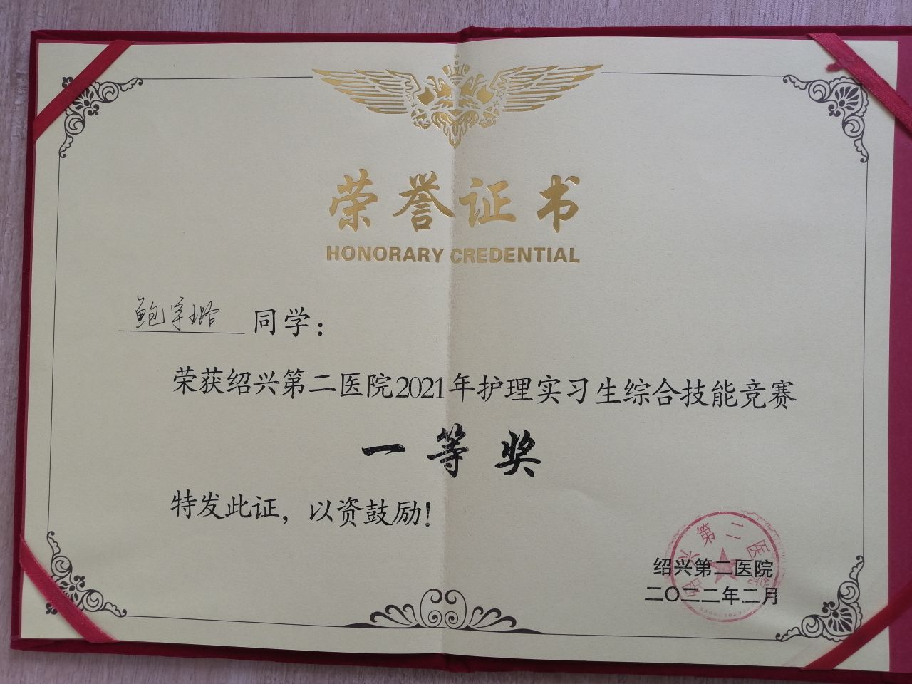 在绍兴第二医院医共体总院近期举行的专业理论考试中,我院学生取得了全部合格的好成绩,明显高于平均水平。在上个月组织的护理实习生综合技能竞赛中,我院护理学专业实习生鲍宇璐(护理学1812班)、徐蝶颖(护理学1812班)二位同学分别获得一等奖和三等奖,在实习学生数占比只有1/30的情况下,取得了13个获奖名次中的两席,成绩喜人。