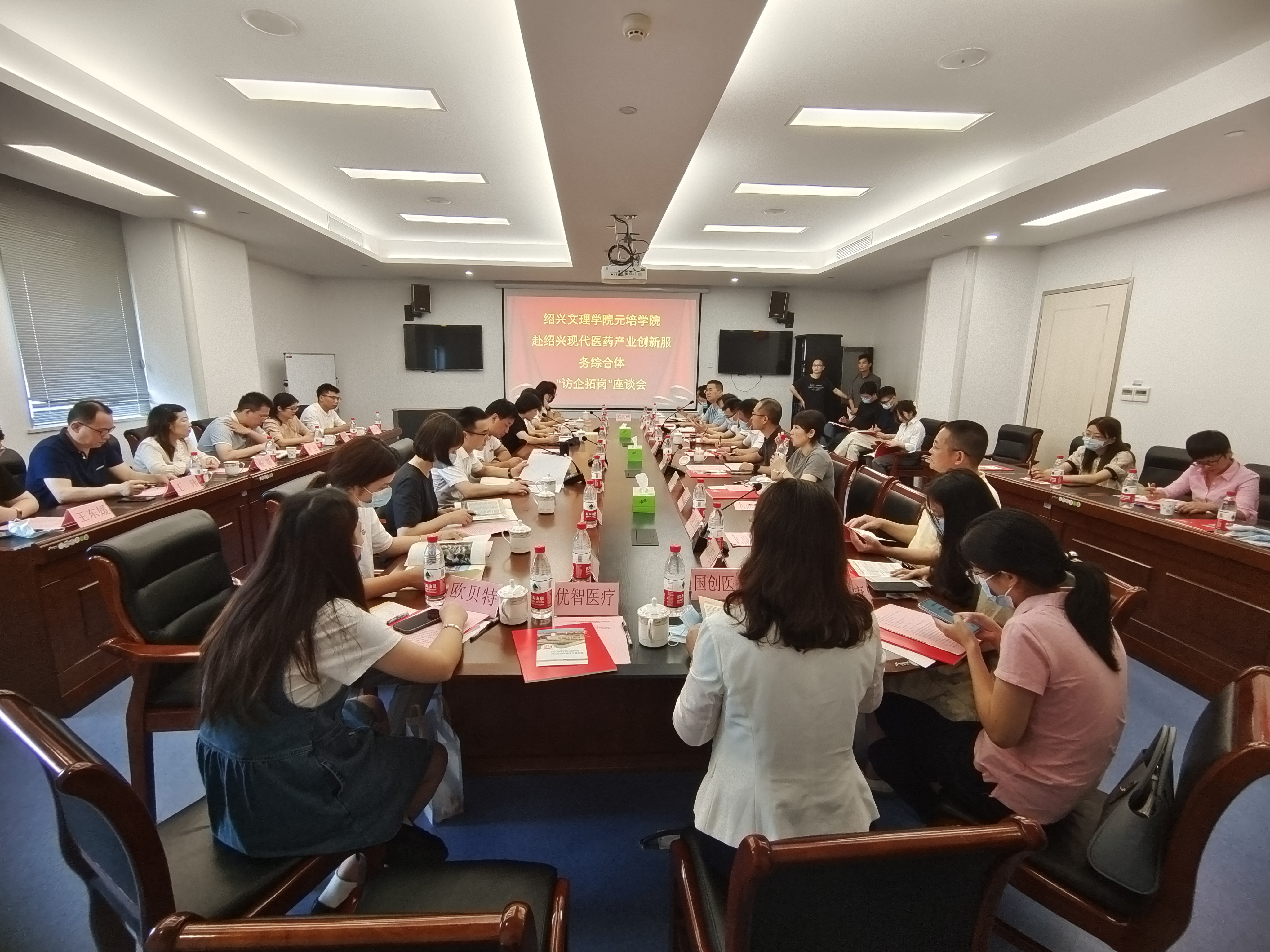 为深入贯彻“稳就业”“促就业”决策部署,拓展就业岗位,精准对接企业需求,落实毕业生就业工作“一把手”工程,6月17日上午,学院院长沈红卫、党委副书记、纪委书记俞国芬率招就处、教务处代表、医药与健康分院领导班子、教师团队一行,赴滨海新区绍兴现代医药产业创新服务综合体开展“访企拓岗”活动。滨海新区管委会党工委委员张天雄、滨海新区经发局、招商一局,滨海新区新区人才发展局、越城区人社局等单位相关领导及中科创和(北京)科技服务有限公司负责人,综合体13家医药企业代表参加了此次座谈会。