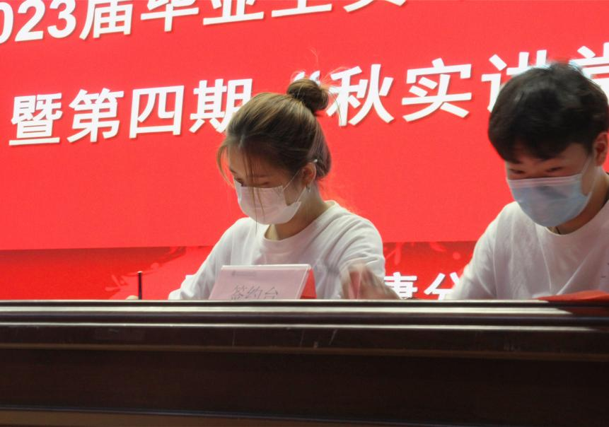 为了发挥党员先锋引领作用,会议首先进行了班长、团支书、预备党员及党员的率先就业的签约仪式。
