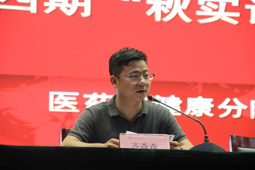为了让同学们进一步了解目前的就业形势,提高就业能力,为即将进入社会提供经验指导,2022年9月27日下午,分院在国际交流中心召开了“2023届毕业生实习就业动员大会暨第四期‘秋实课堂’”。出席会议的有分院党总支书记金超老师,分院副院长罗超老师、分院张娜老师及2011届优秀毕业生代表齐森森,会议由分院学工办主任张益勋老师主持,2023届全体药学专业全体学生参加,浙江医药、浙江知行药业、浙江美诺华制药等企业代表也应邀出席。