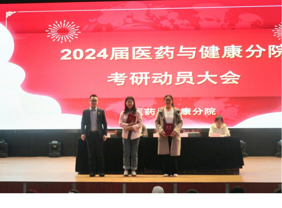 为帮助2024届毕业生尽早了解考研形势与政策,明确考研计划,端正考研态度,我分院于3月8日下午15:00在国际交流中心举办了2024届考研动员大会。出席本次大会的有分院党总支书记金超老师和分院21届优秀校友朱怡同学、22届优秀校友胡柯羽同学以及药学1904班寿亿路同学。会议由学工办主任张益勋老师主持,24届全体学生参与。