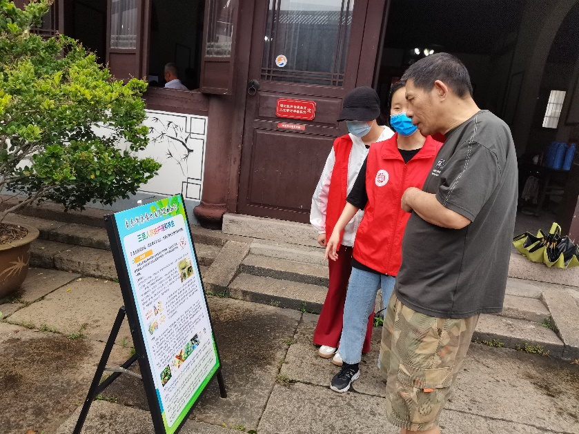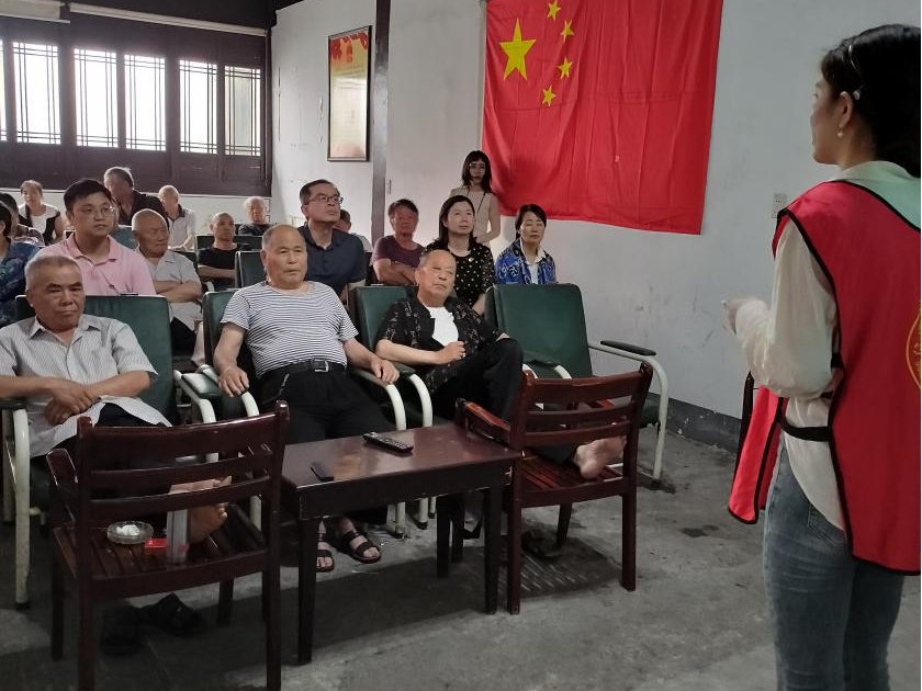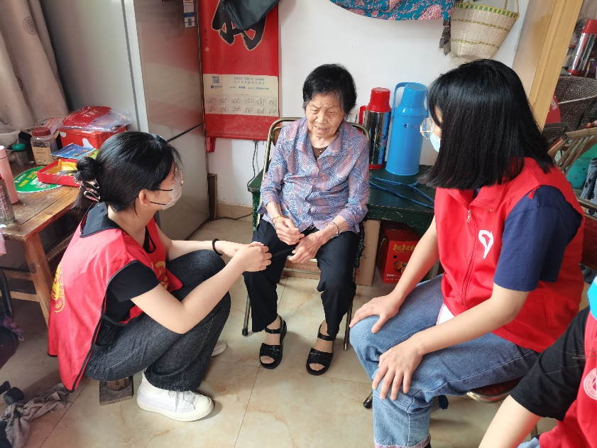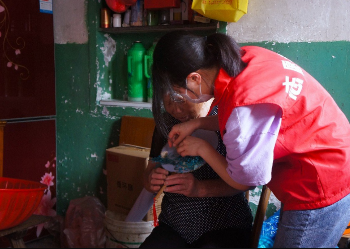 分院组织护理学和药学专业学生组成安宁疗护志愿团队,以实际行动尊老敬老、爱老助老,解决孤寡老人生活不便之处,提供关怀服务。安宁疗护团队走访老人家里,陪伴老人聊天,帮助老人做家务,共同做团扇。团队成员了解老人情况后表示计划将走访东浦村老人成为常态化志愿服务,尽自己努力完成老人所需所盼。