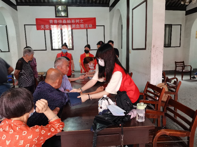 医药与健康分院以党建为引领,探索校地融合新模式,紧密联系东浦村,就其老龄化较严重,老年康养被放在村庄基层治理的重要位置,分院近日在东浦村开展“青春伴桑榆”关爱老年健康系列公益志愿服务活动。