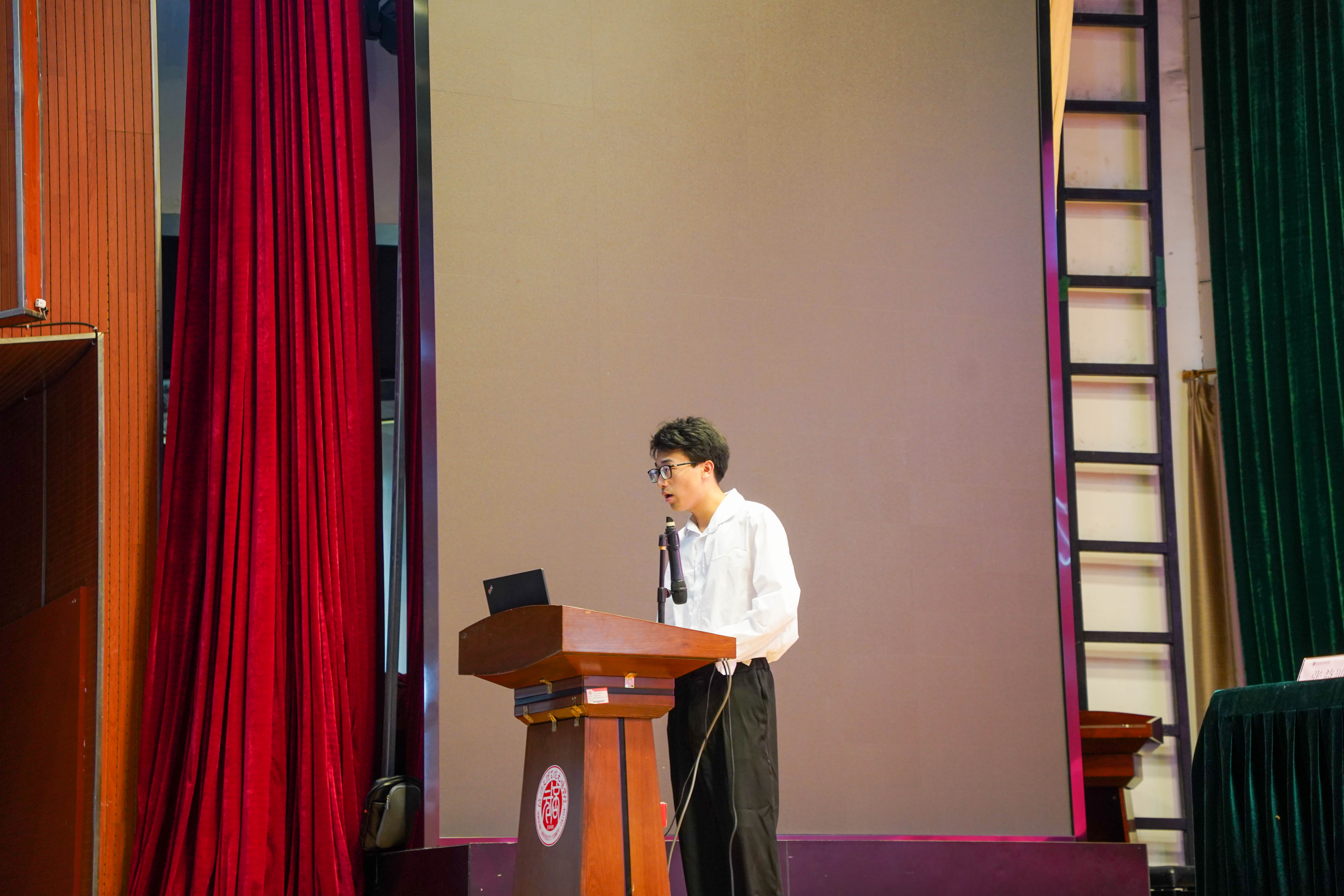 老生代表俞吉阳、新生代表苏怡心依次发言,向新生们分享感悟与祝福。值得一提的是分院2020届优秀毕业生方明真同学也来到了开学典礼的现场,2020年他考取了温州医科大学的硕士研究生,现工作于浙江大学妇幼儿童医院。他向新生们分享了自己在元培医药与健康分院的的求学经历,并鼓励同学们勇敢面对大学的机遇与挑战,合理安排时间,用生命中最宝贵的青春时光,为自己谱写壮丽的人生篇章。