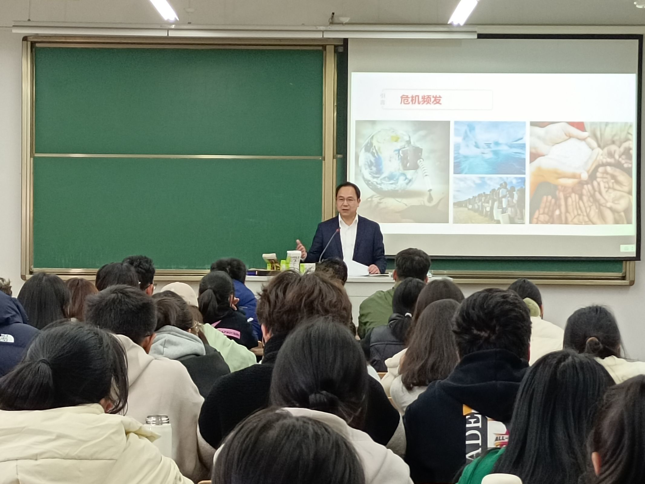 11月21日下午,绍兴文理学院元培学院党委书记梁瑜为我分院护理学2301、2302班带来了主题为“世界变乱变织,中国笃行担当”的形势与政策课讲座。