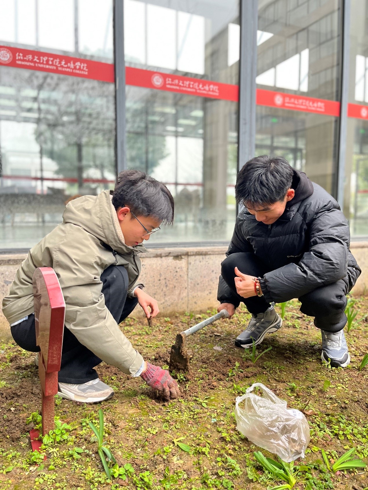 多维融合育新人。此次植树节活动也是《生药学》课程的实践教学。在老师的指导下,同学们学习了药植的特性,结合开展药用植物生长观察、药性分析等系列实践活动,进一步夯实专业基础。药学2204班申舟同学有感而发:“亲手栽种一株连翘,让我有了更立体的认知。这份与土地的连结,提升了我们的动手能力,带我们从书本走向现实。”