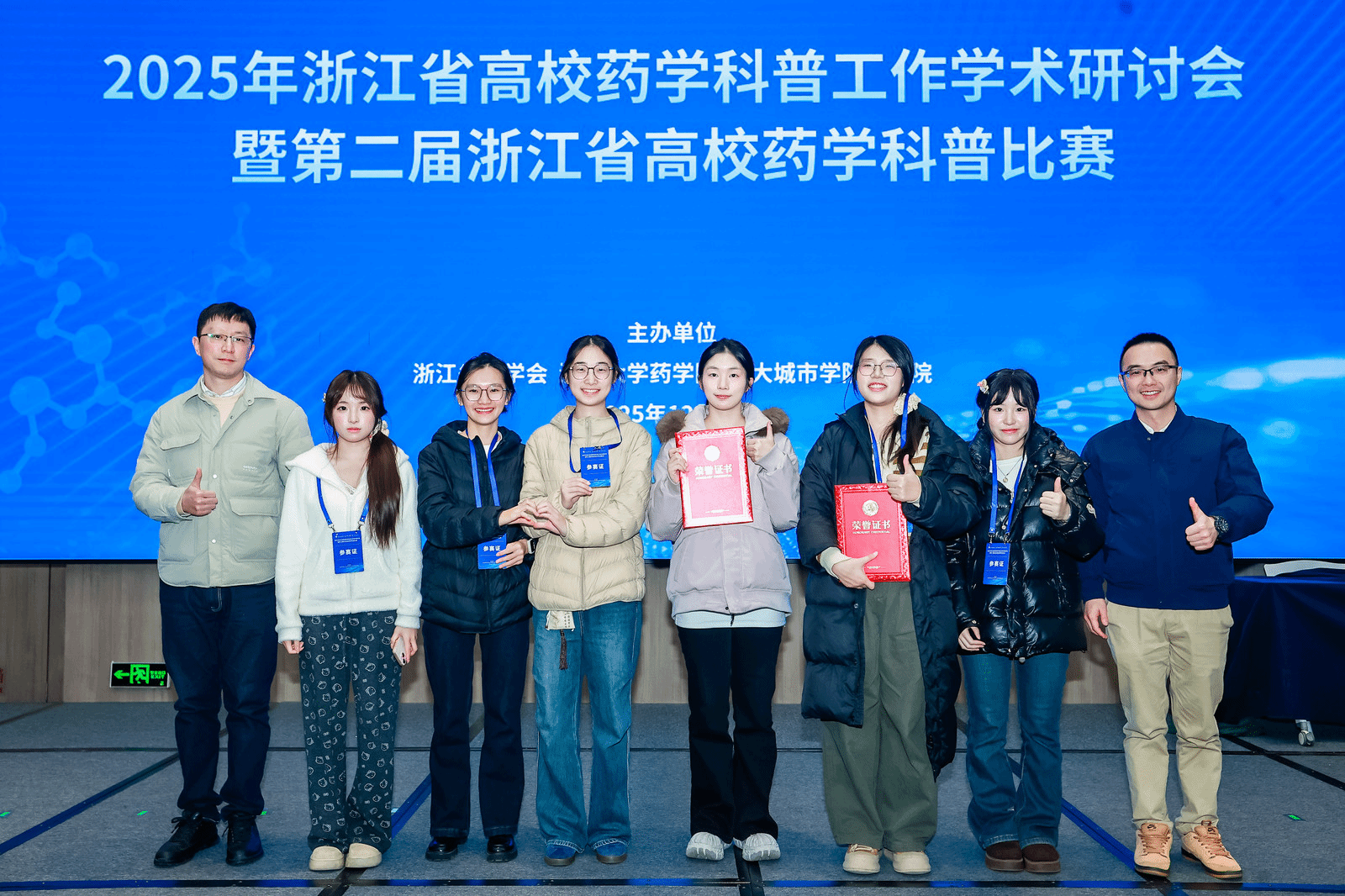 为发挥高校科普优势、讲好浙江高校药学改革故事,近日2025年浙江省高校药学科普工作学术研讨会暨第二届药学科普比赛在浙大城市学院举行。医药与健康学院党委副书记金超带队参赛,同学们围绕“山海共富‘药’科普”主题,充分展现了我院药学科普的实践成果与风采。