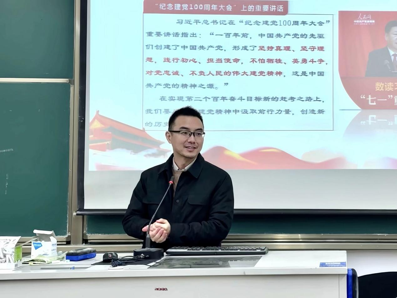 金超书记以李大钊、黄文秀、陈剑荣、张思德、申纪兰等英雄人物为例带领学生干部体会了伟大建党精神的真正内涵。