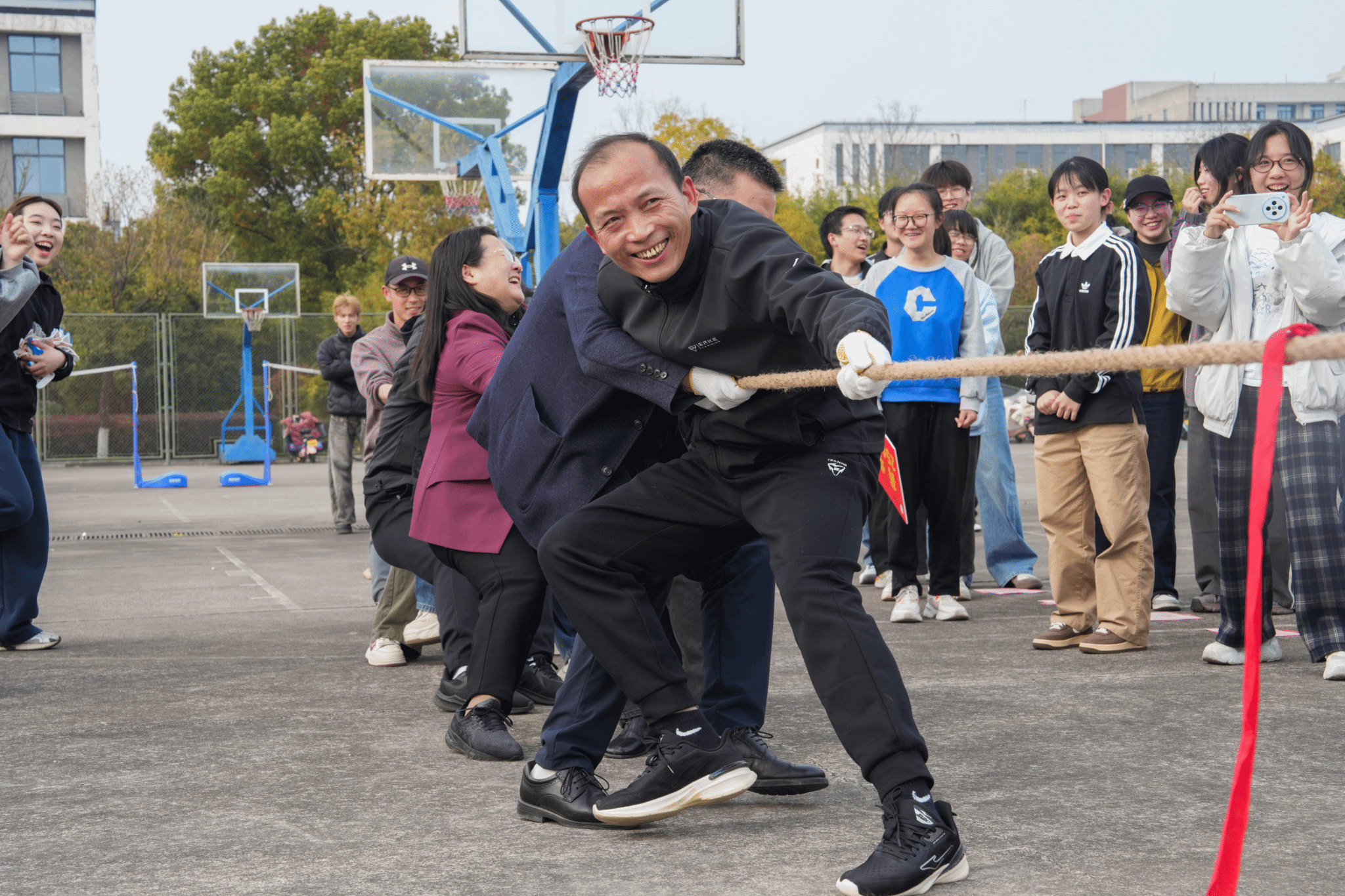 随着校党委书记高建国吹响哨声,本次“班超”系列首场活动——拔河比赛也正式开赛。赛场火热的竞技氛围吸引了学校领导驻足观赛,高建国书记带领学校代表队,与医药与健康学院教师代表队展开了一场紧张刺激的拔河友谊赛。