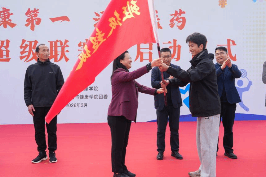 启动仪式上校党委书记高建国宣布绍兴理工学院医药与健康学院“班级超级联赛”正式启动。高丽静副书记为班级代表授旗。